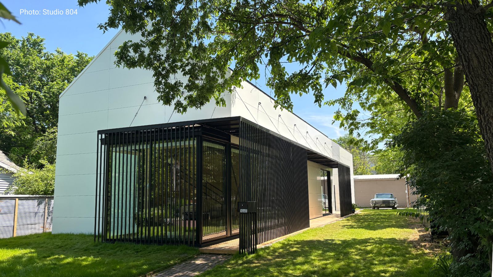 The choice of white for the exterior of this project arose during the design process, when preliminary sketches of the envelope displayed the home before the final color was selected. Rockhill said that while the white served as a placeholder color, the students realized its curb appeal and decided to keep it.