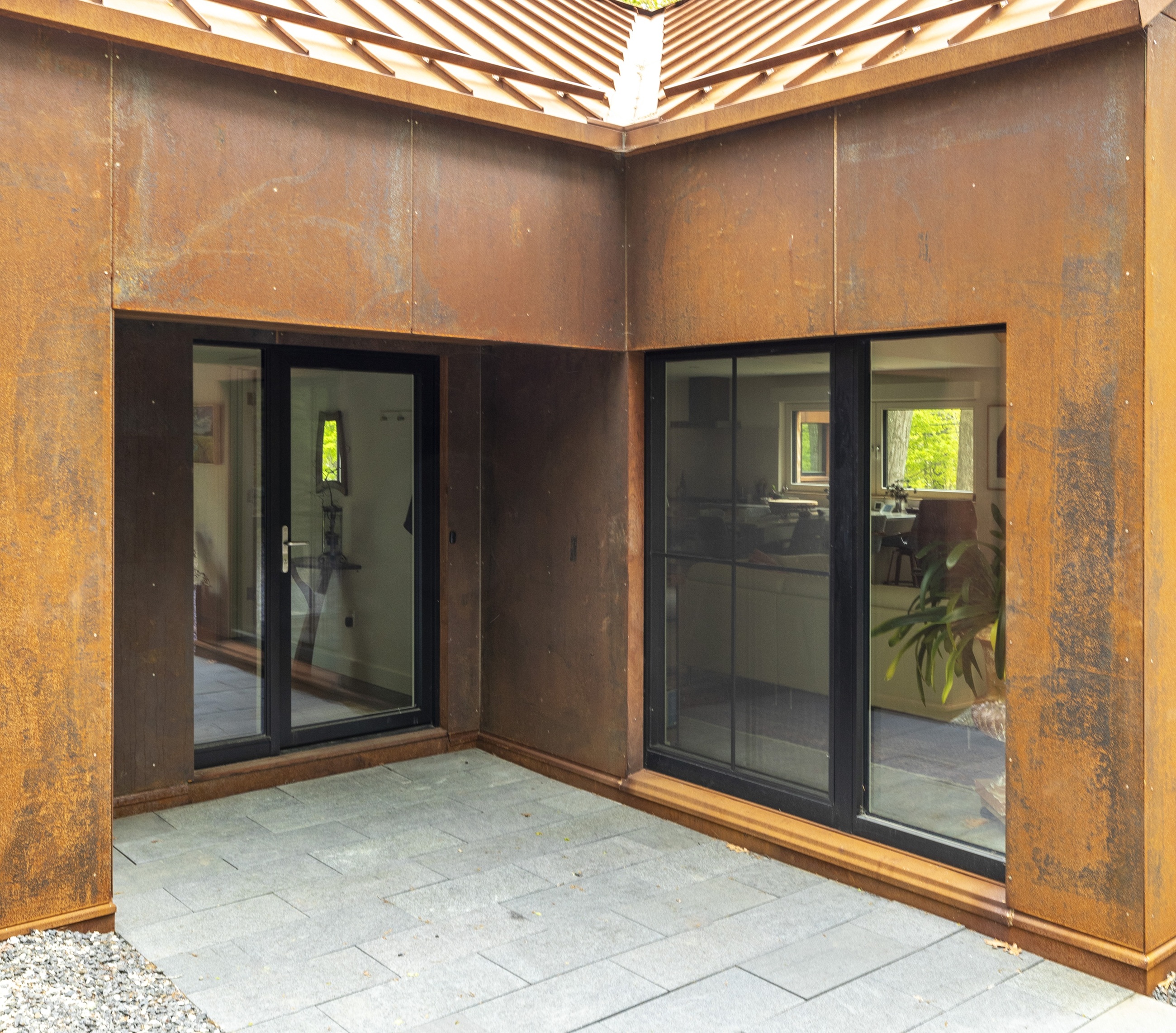 Sheet Metal Supply, a leading North American metal fabricator and supplier, delivered 11-gauge Corten prefabricated panels for the walls of the home and 22-gauge Corten A606 standing seam panels for the roofing.