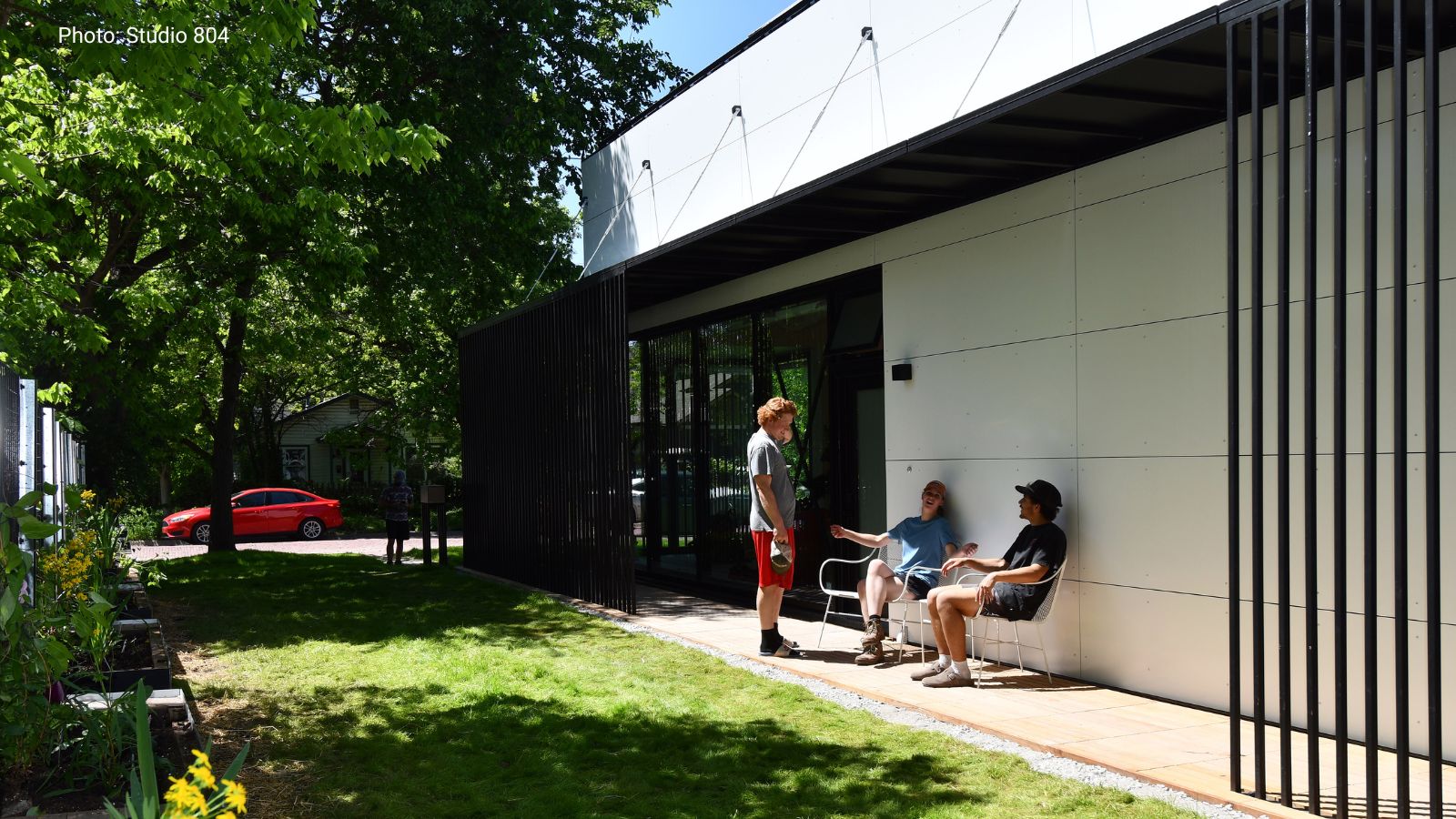 The choice of white for the exterior of this project arose during the design process, when preliminary sketches of the envelope displayed the home before the final color was selected. Rockhill said that while the white served as a placeholder color, the students realized its curb appeal and decided to keep it.