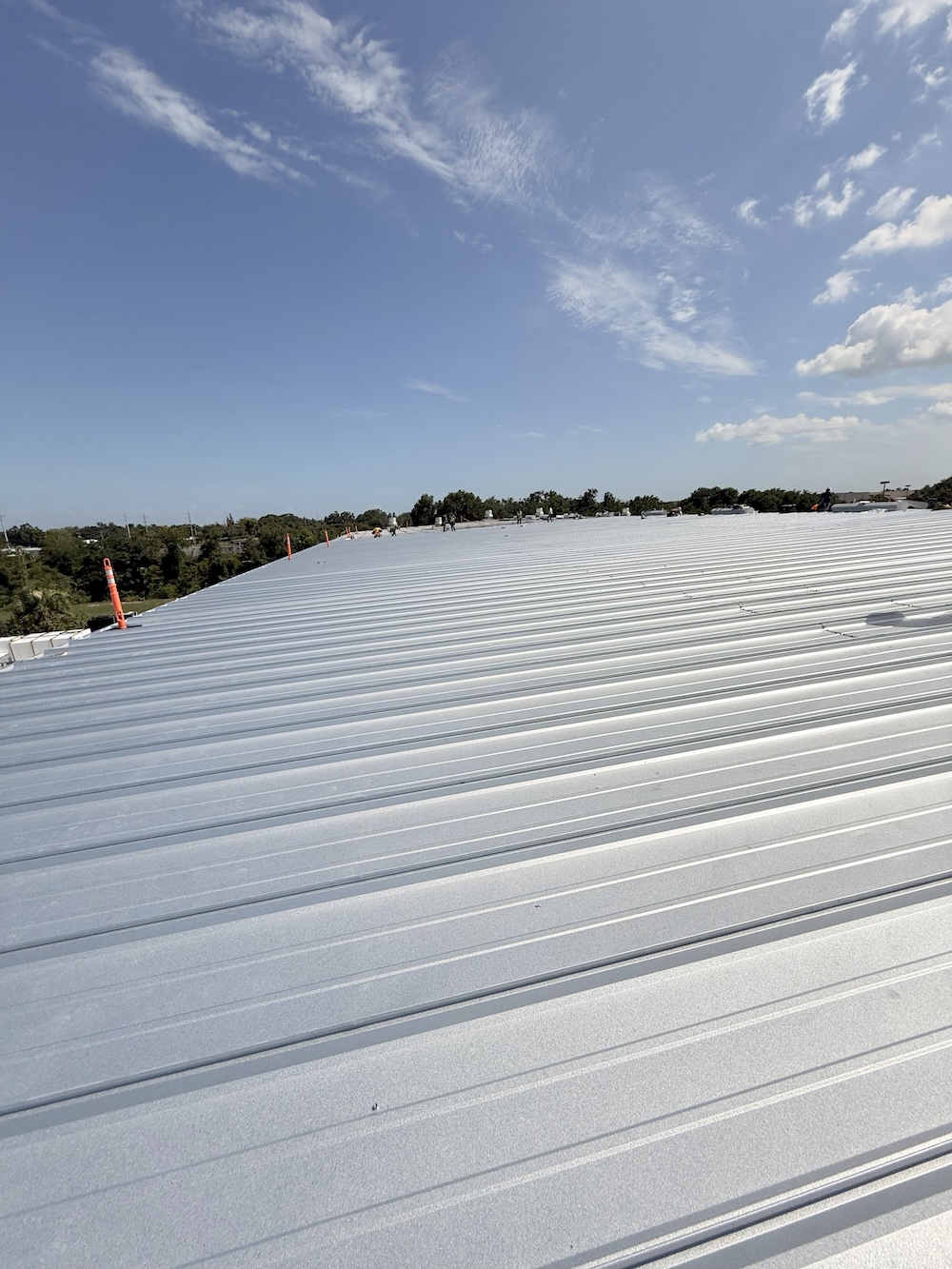 The building’s aging and previously coated, trapezoidal standing seam metal roof had reached the end of its service life. The owner turned to Steven Pinto, owner of SteelCor in Sarasota, Fla., who specializes in commercial metal structures. Pinto proposed a solution tailored to Florida’s challenging weather: a Roof Hugger metal-over-metal retrofit system.